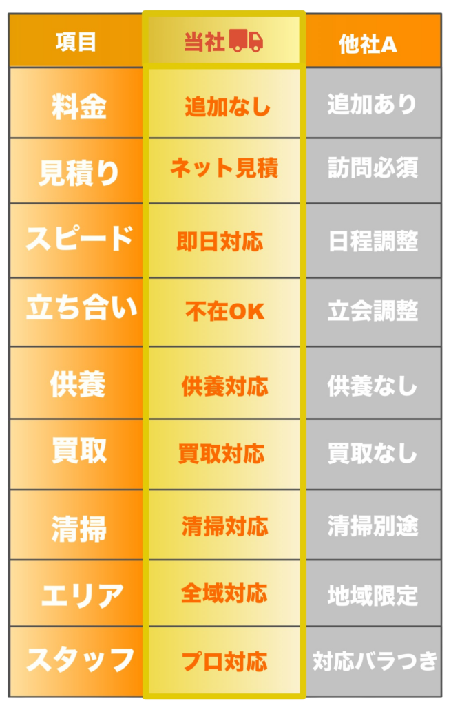 メモリアル整理ラボでは見積もり後の追加料金は一切いただきません。