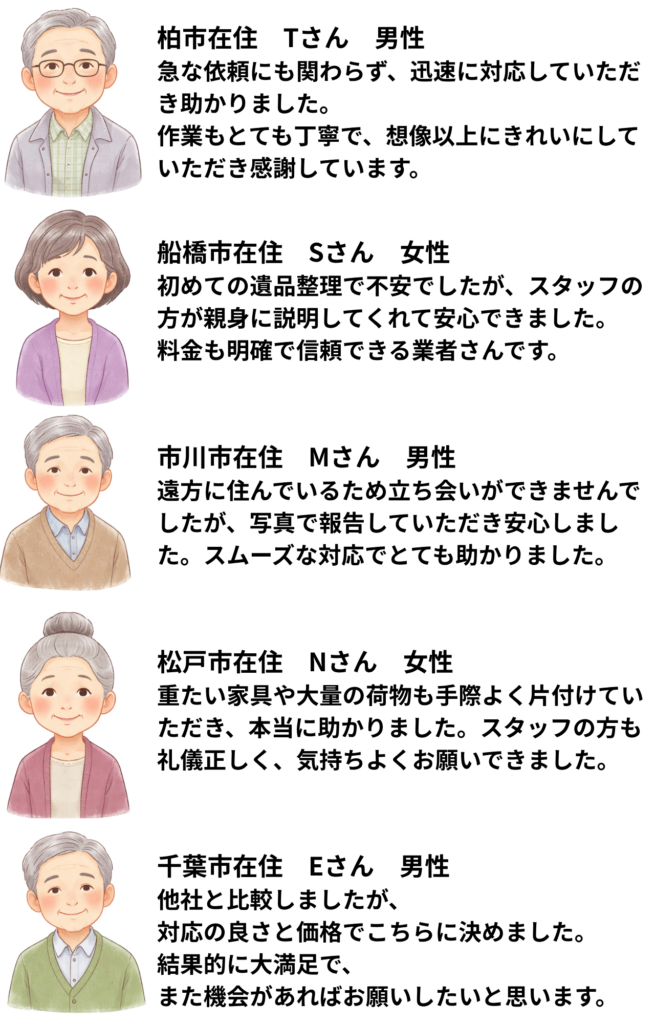 千葉県で遺品整理をご検討の方はお気軽にご相談ください。