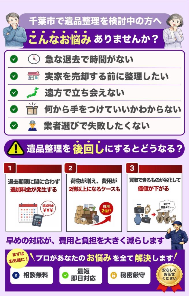 千葉市内でお急ぎの遺品整理をご希望の場合も、まずはご相談ください。