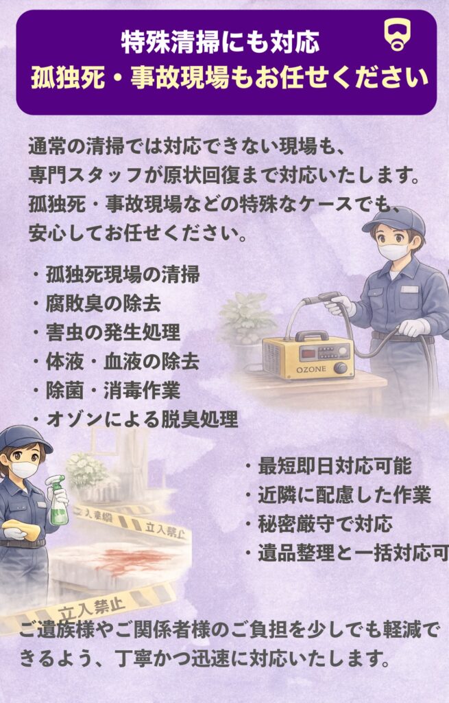 騒音や搬出時のマナーにも注意し、できるだけご負担の少ない形で対応いたします。