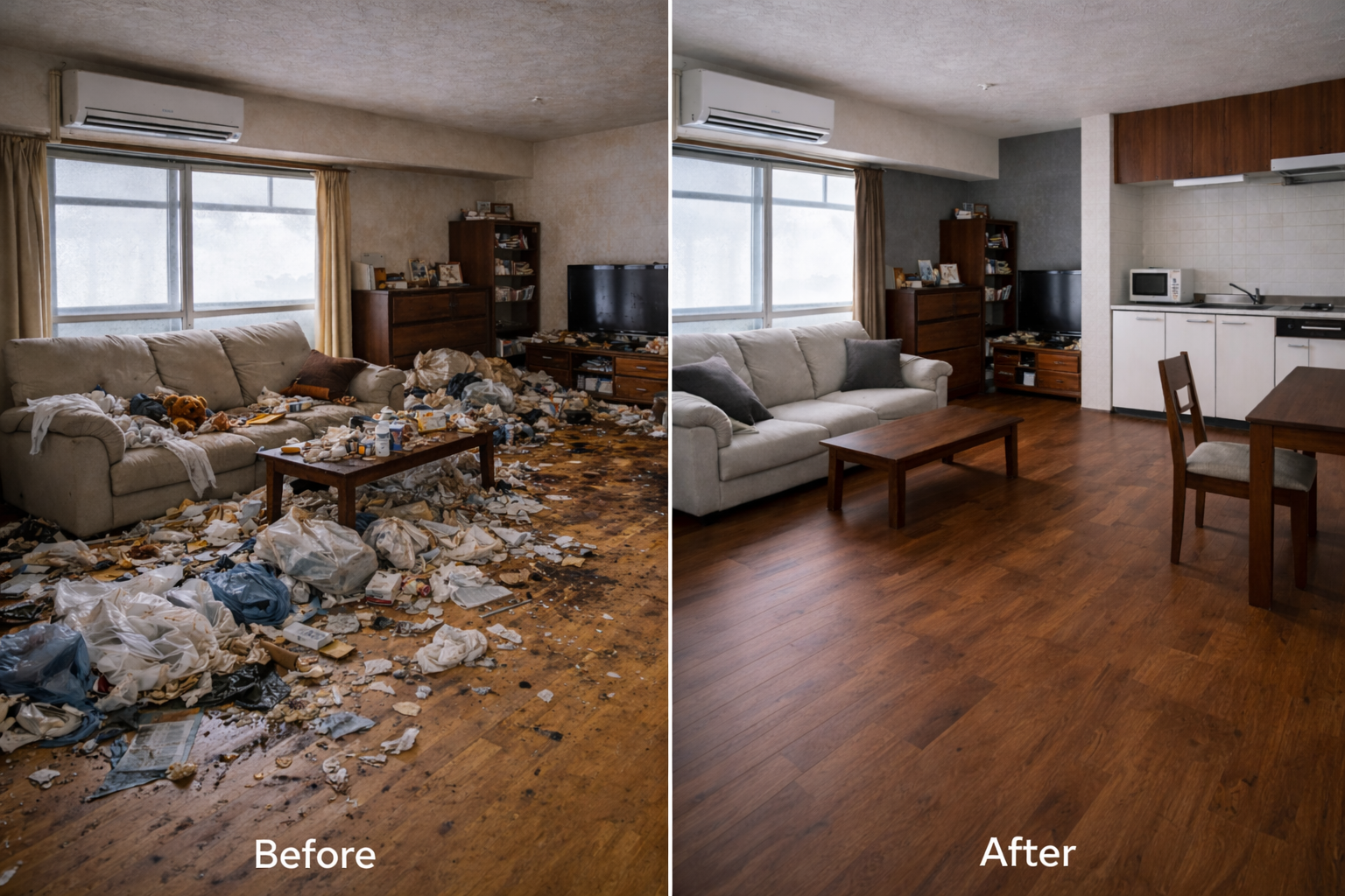 などで、遺品整理と特殊清掃の両方が必要になるケースが増えています。