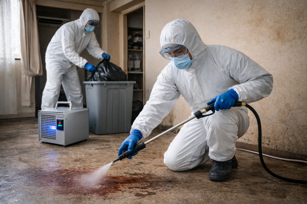 体液・血液・腐敗臭などの汚染を除去する専門作業です。